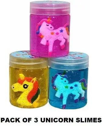 Crystal Clear Putty Slime Jelly Clay with UNICORN Figures Educational Toy Set of 3 Multicolor Putty Toy Multicolor Putty Toy Yellow, Pink, Blue Putty Toy