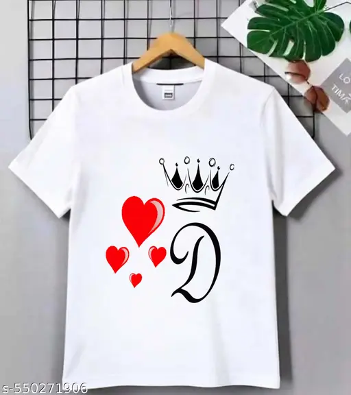 King Crown Alphabet A-Z Half Sleeve Tshirt for Boys and men White Half sleeve tshirt
